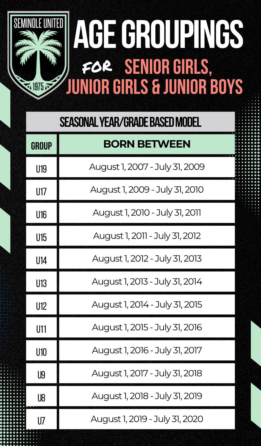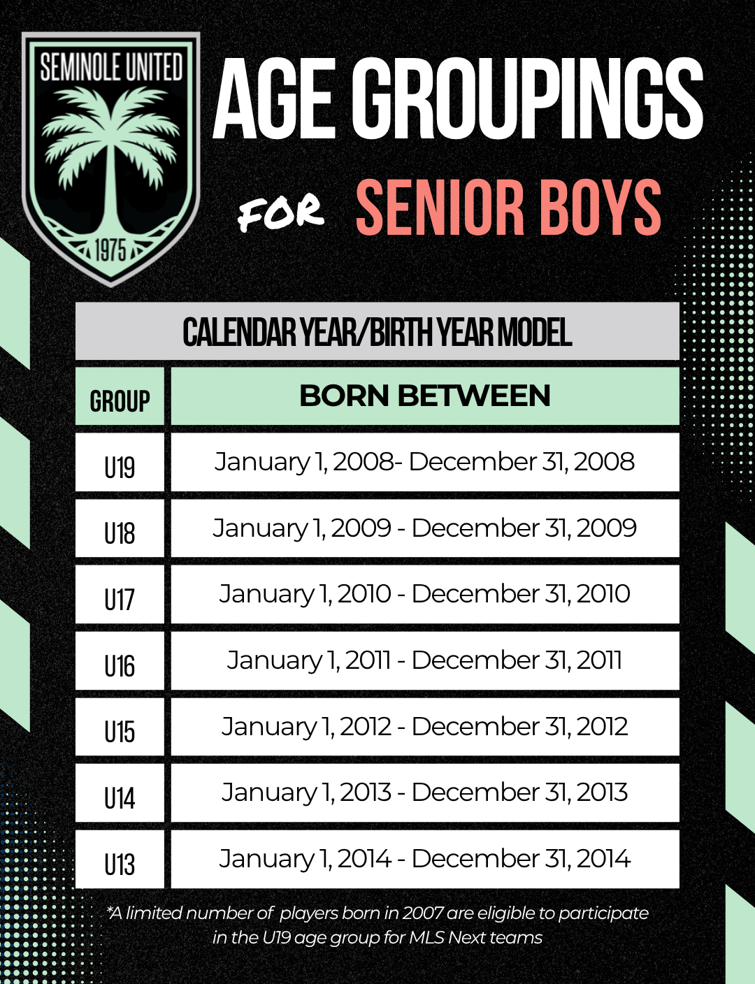 *Note: Senior Boys teams will follow the calendar year/birth year model and will not utilize the age group calculator.